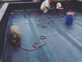 楼顶有裂缝怎么做防水补漏:1、将裂缝用凿子开出20x30mm的槽,要沿开裂的缝隙两头各延长20-30公分。并将槽边松动酥软的部位去除。2、用清水用毛刷将剔出的槽沟清洗干净3、将cf-2000高效复合防水剂,活成腻子状,带水堵漏是要稍硬一些,然后填充到凿开的槽内。密封压实即可。填充前一定将沟槽喷水湿润。可以带水堵漏操作后立即止水堵漏。30分钟可止2公斤压力渗水。24小时可抗7公斤压力渗水。4、最好两步以上完成。第一步要将 cf-2000高效复合防水剂和沟内墙体充分接触,第二步填平抹光压实即可。5、处理多年反复渗漏的节点时,需要槽沟更深